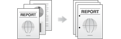 Each set of copied sheets is stapled (in a corner or two positions) before it is output. This function is useful for preparing a project proposal or other booklet materials.