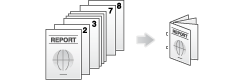 The pages in the original data are arranged and spread in a booklet format and printed on both sides of sheets. You can also specify the binding position, or insert front and back covers.