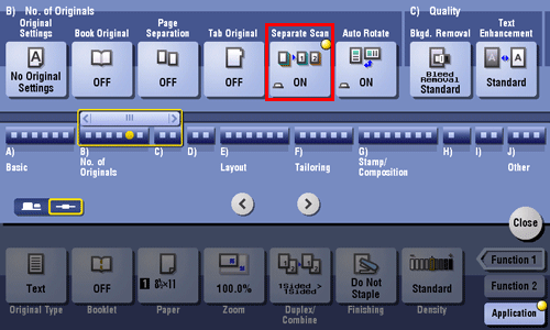 2. Tap [Application] - [No. of Originals] - [Separate Scan], and set to [ON].