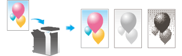 There are four color modes: [Auto Color] that scans the original based on its color, [Full Color], [Gray Scale], and [Black].
