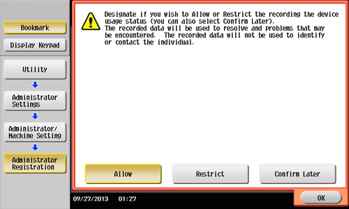 [Administrator/Machine Settings] | Register information on the administrator and this machine. |