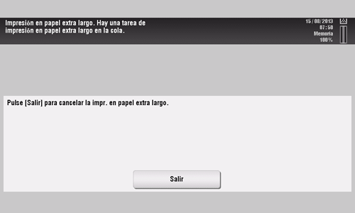 Cuando se pone en cola una impresión en papel extralargo, la máquina puede recibir las siguientes tareas de impresión, excepto tareas de impresión en papel extralargo.