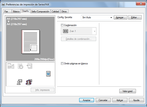 En la ficha [Diseño], puede configurar la configuración de diseño para el envío de un fax.