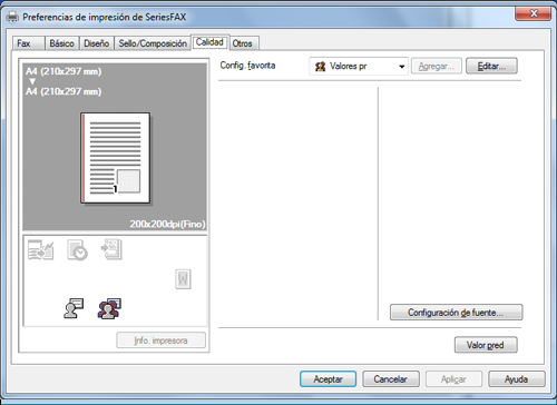 En la ficha [Calidad], puede configurar un proceso de fuente en el original cuando se envía por fax.