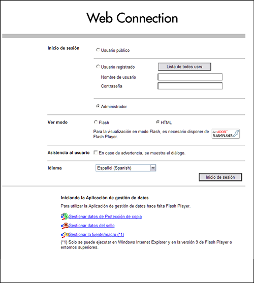 Web Connection tiene varios modos de iniciar sesión y las operaciones disponibles varían en función del modo.