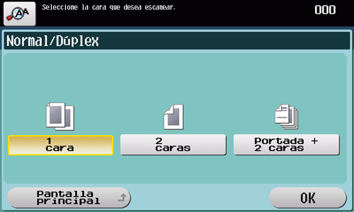 [1 cara] | Toque este botón para escanear un lado de un original. |