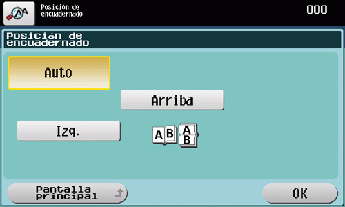 [Auto] | Establece automáticamente la posición de encuadernación del original.