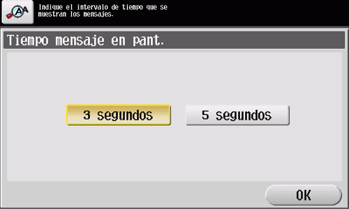 Cambie el tiempo durante el que se muestran los mensajes en el panel táctil.