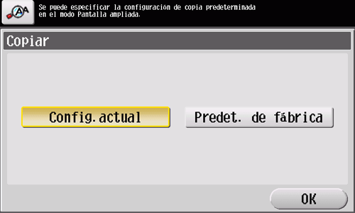 Seleccione [Config. actual] y, a continuación, toque [OK].