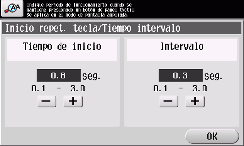 Toque [Accesibilidad] - [Inicio repet. tecla/Tiempo intervalo].