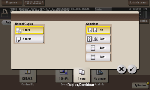 InicioDescripciones de las funciones / teclas utilidadesDúplex/Combinar