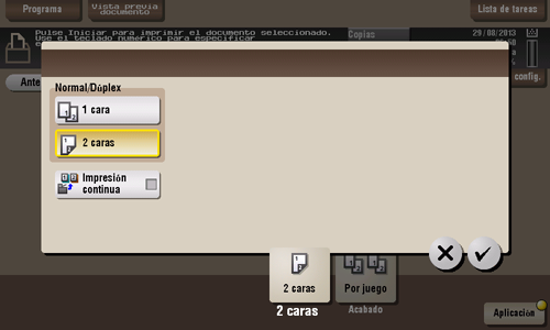 [Normal/Dúplex] | El original se imprime ya sea en una única cara o en las dos caras de papel. |