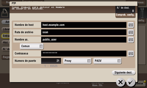 [Común] | Cuando no se requiera autenticación para el servidor FTP de destino, seleccione este elemento. |