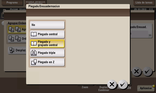 InicioDescripciones de las funciones / teclas utilidadesPlegado y grapado central