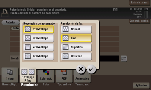 [Resolución de escaneado] | Seleccione una resolución para el original al guardarlo en una memoria externa.