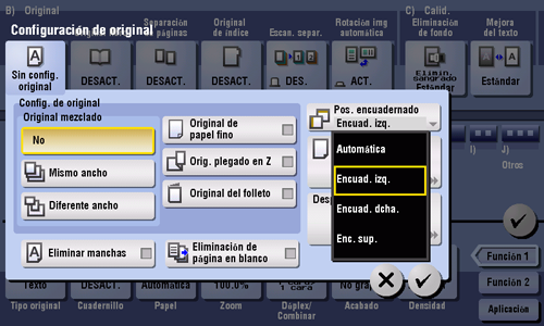 [Encuad. izq.] | Seleccione esta opción si la posición de encuadernado está configurada en la parte izquierda del original. |