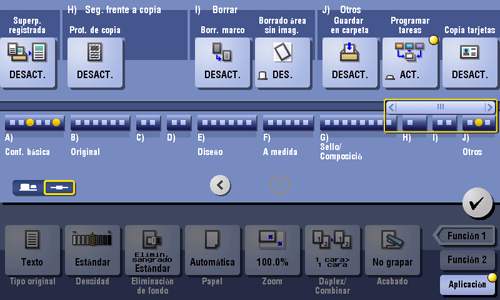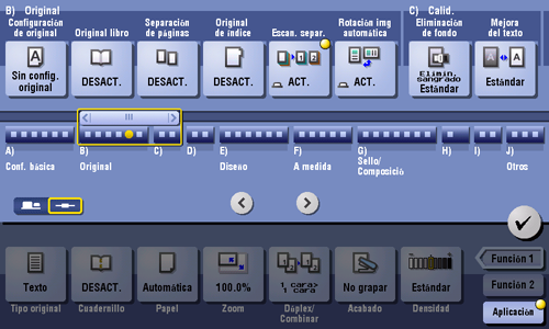 Los originales se escanean con ajustes diferentes para cada juego y se copian de forma colectiva. Use esta función cuando haya varios tipos de originales mezclados, como originales de 1 sola cara que se van a imprimir de un lado del papel, y originales de 2 caras que se van a copiar con ampliación.