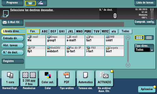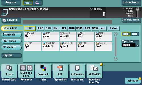 Toque [Comprob. config.] antes del envío y compruebe el destino y la configuración si es necesario.