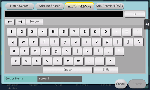 Wenn der LDAP-Server oder Active Directory von Windows Server verwendet wird, geben Sie ein einzelnes Schlüsselwort für die Suche nach einer E-Mail-Adresse oder Faxnummer ein.