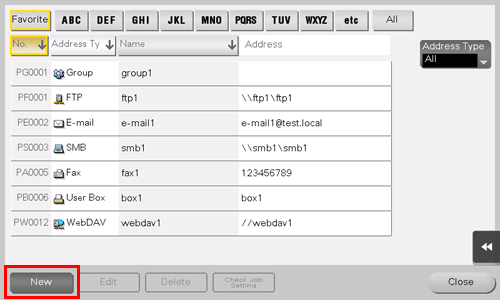You can also register an E-mail address using Web Connection. For details, refer to Here.