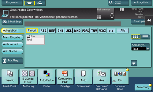 Für die Verwendung von DOCX oder XLSX als Dateityp werden der optionale Erweiterungsspeicher und i-Option LK-110 v2 benötigt.