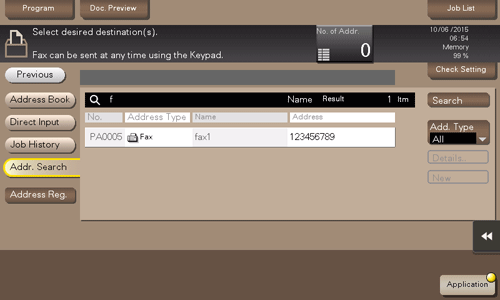 Select an address search method, then carry out an address search. Select a destination from the search result list.