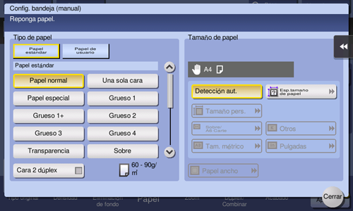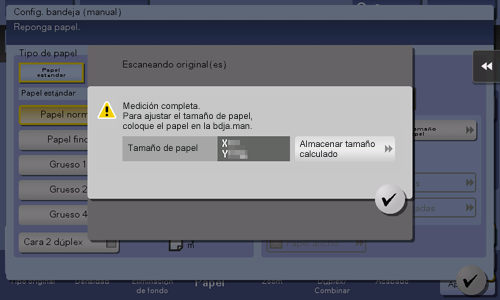 Toque [Cambiar aj. bandeja] - [Esp.tamaño de papel].