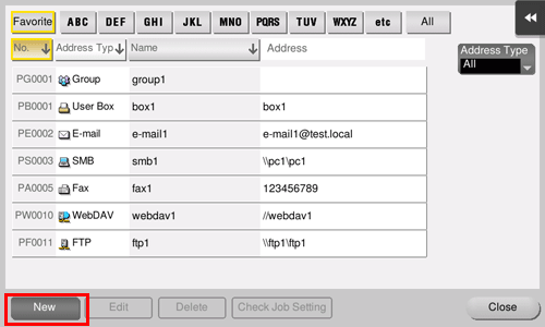• To check the settings for a registered destination, select its registered name, then tap [Check Job Setting].