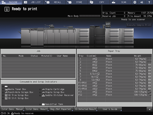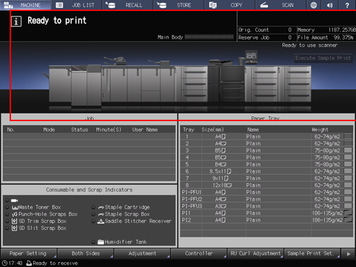 1. On the touch panel of the main body, press Paper Setting on the MACHINE screen.