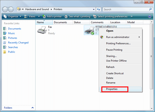 In Windows 7/8/8.1/Server 2008 R2/Server 2012/Server 2012 R2, right-click the icon of the installed printer,