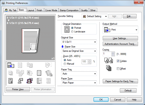 You can register the current print settings as a favorite and recall it when executing printing. For details on the [Favorite Setting], refer to Here. |