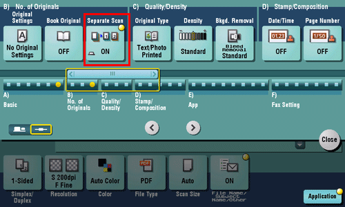 In [Separate Scan], you can switch between the ADF and Original Glass for scanning the originals.