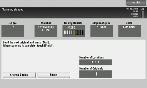 After all originals are scanned, tap [Finish] and press the Start key.