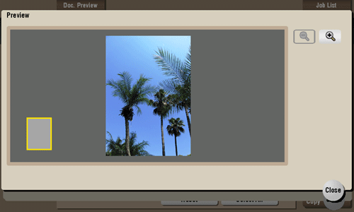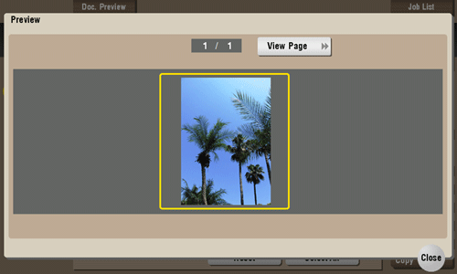 [Preview/Set Range] | Sets a range of pages and displays them as preview image. You can also change the display size. |
