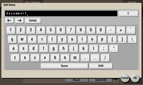 Select a file, then tap [Other] - [Edit Name]. Now you can rename the file. Enter a new name from the Touch Panel.