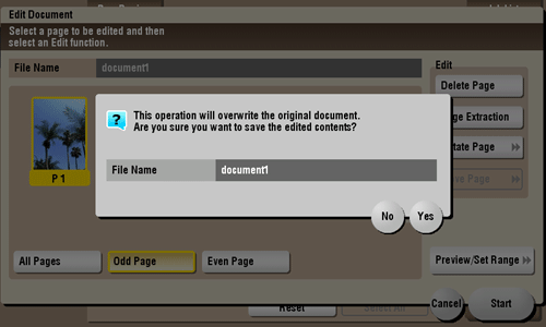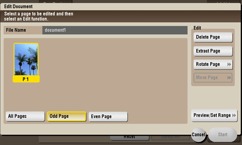 [Extract Page] | Extracts a selected page. When there are too many pages to be deleted, selecting the page only you need to reserve eliminates the need for deleting after selecting many pages. You can also long-tap the target page to display the menu icon, then drag and drop it to |