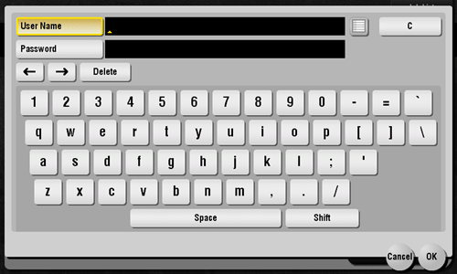 When executing the authentication with the password alone, the Keypad remains displayed on the screen. If the password is numeral alone, it is possible to directly enter the password.