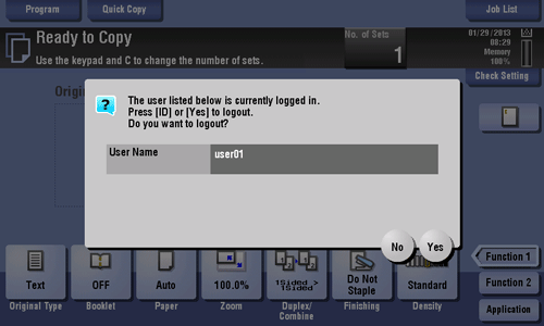 If you do not operate this machine for a certain period of time during login (default: one min.), you will be automatically logged out.