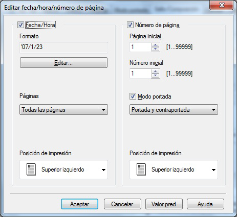 [Fecha/hora] | Cambie la posición de impresión o el formato de la fecha/hora. | |