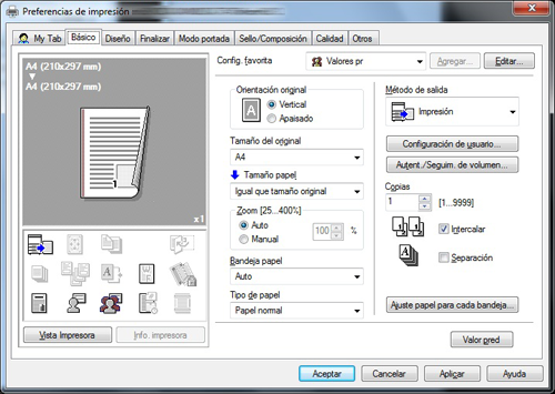 En la ficha [Básico], configure la función de impresión con contraseña para [Impresión segura], [Guard. en cuadro usu.], [Autenticación], etc.