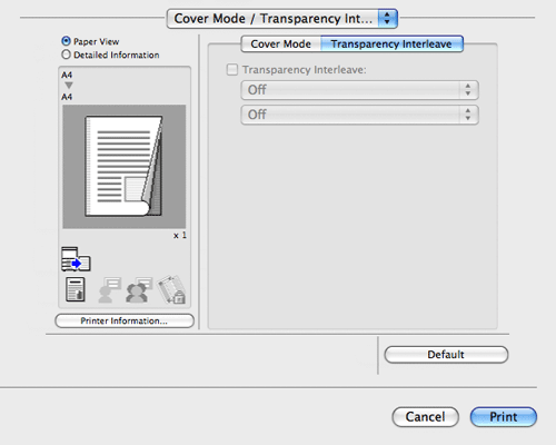 En [Cover Mode / Transparency Interleave] o [Cover Mode] (Mac OS X 10.7 o posterior), puede insertar portadas en las impresiones y también puede insertar transparencias OHP intercaladas al imprimir transparencias OHP.