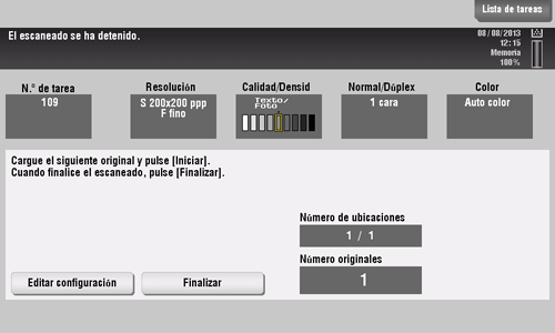Una vez escaneados todos los originales, toque [Finalizar] y pulse la tecla Inicio.