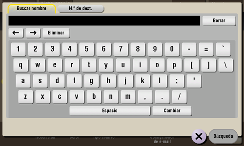 Al buscar un destino por dirección de correo electrónico o nombre de ordenador, toque [N.º de dest.].