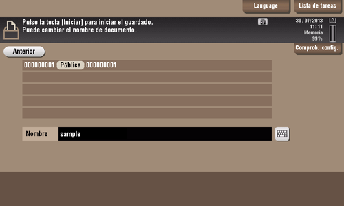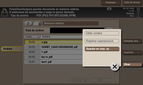 Toque [Guardar doc. memoria ext. en carp. usuario].