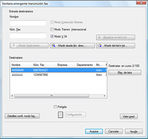 Se abre la pantalla [Ventana emergente transmisión fax].