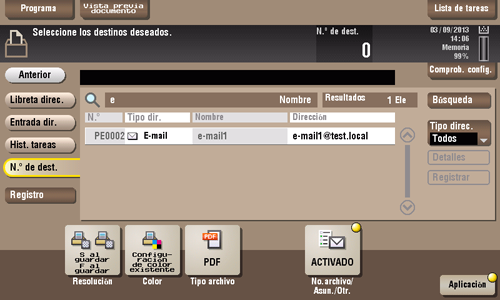 Toque [Búsqueda] para mostrar los resultados de la búsqueda. Seleccione un destino de la lista.