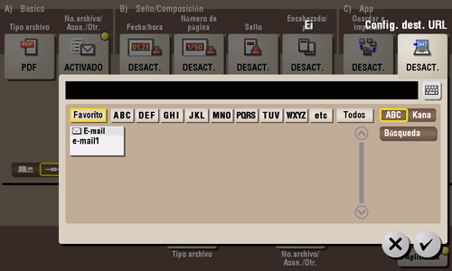 InicioDescripciones de las funciones / teclas utilidadesConfig. dest. URL