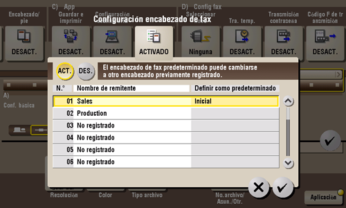Si desea utilizar un nombre de remitente diferente del predeterminado, seleccione el nuevo nombre de remitente que desea utilizar y, a continuación, toque [Aceptar].