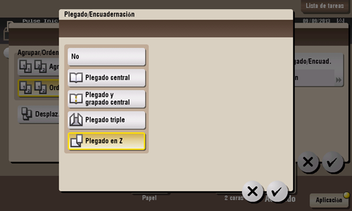 Para utilizar la función de plegado en Z, son necesarias la unidad de acabado FS-535 opcional y la unidad de plegado en Z.