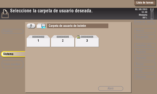 Para acceder a un archivo de esta carpeta de usuario, seleccione la carpeta de usuario deseada y, a continuación, toque [Abrir].